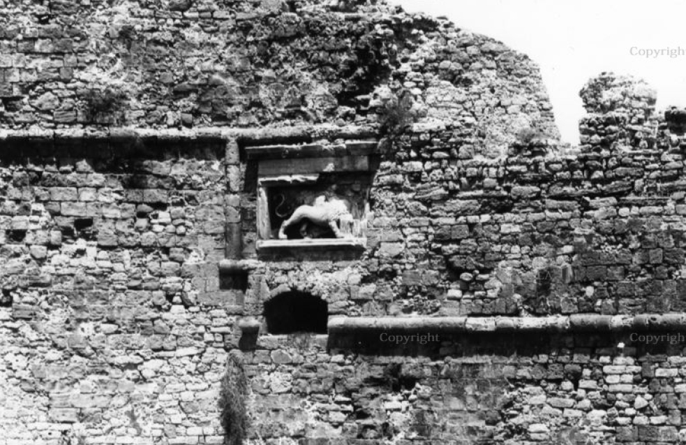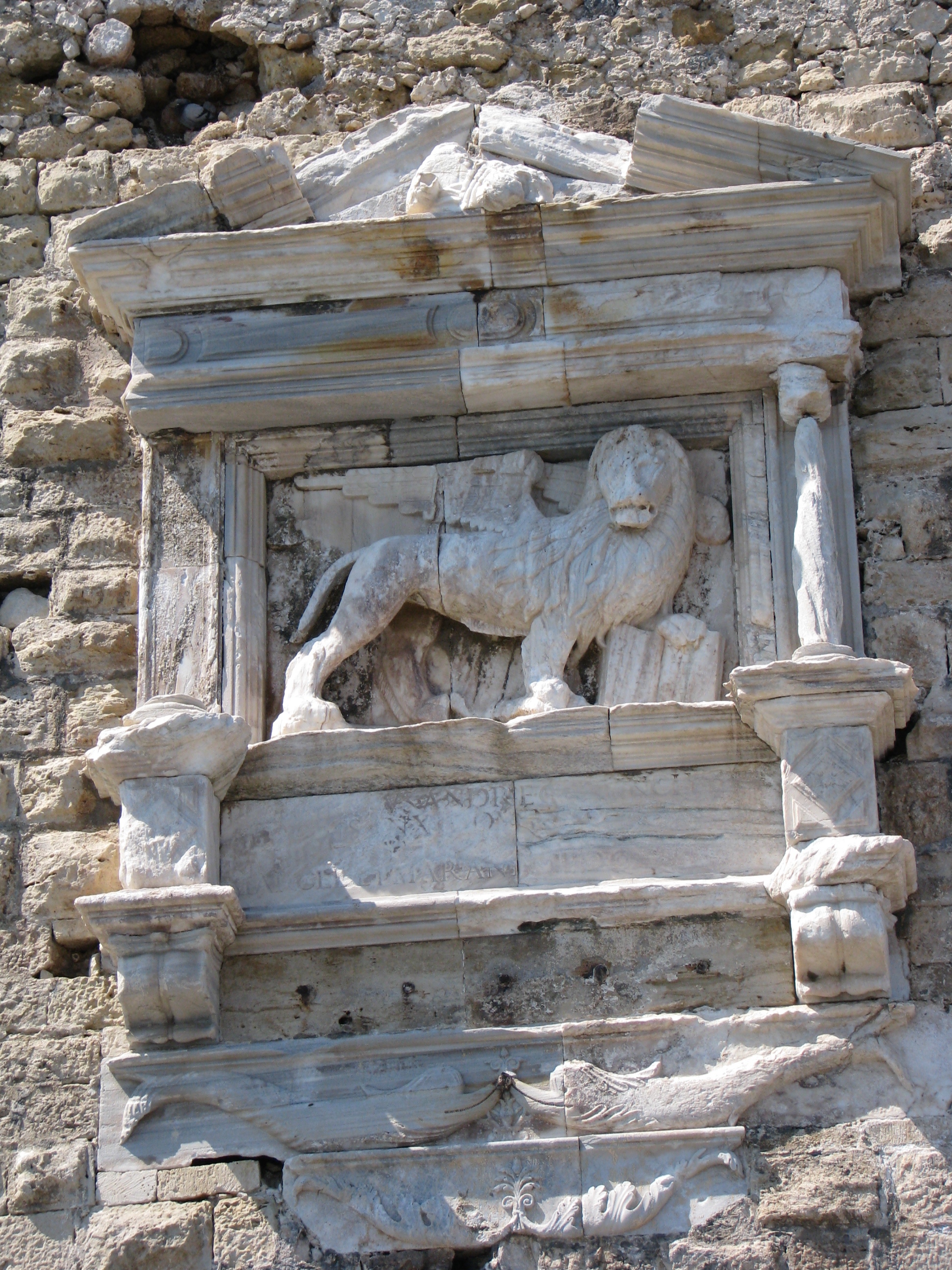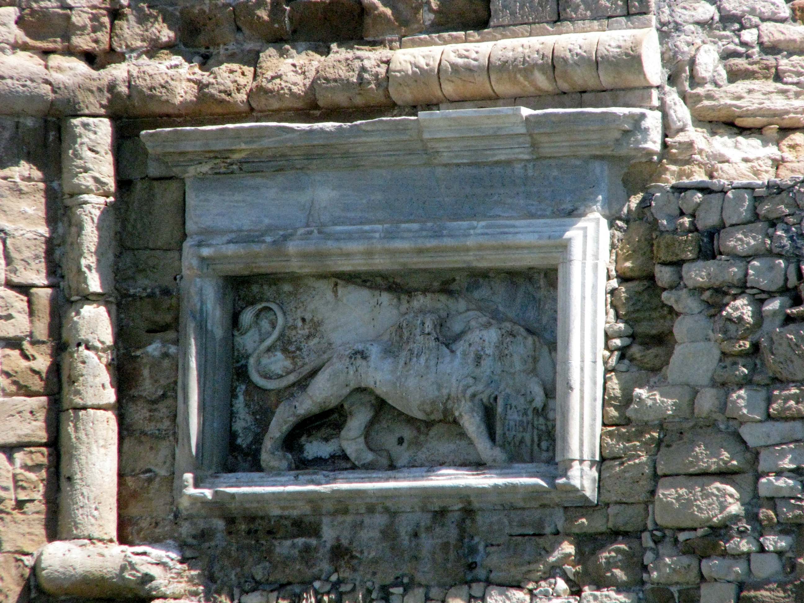 of the fortress dominate the marble relief emblem of Venice, the winged lion