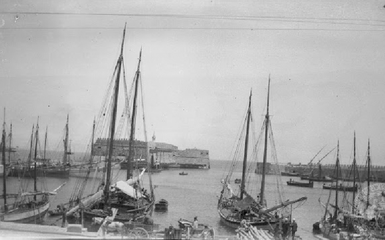 Τις λιμενικές ανάγκες της πρωτεύουσας της Κρήτης εξυπηρετούσαν στα μινωικά χρόνια οι εκβολές του Κατσαμπά, αν και σαν ασφαλής προλιμένας λειτούργησαν σε όλες τις εποχές οι νότιοι όρμοι της Ντίας. Από τον 3ο αι. π.Χ. και εξής αναπτύχθηκε γύρω από το μετέπειτα ενετικό λιμάνι μια μικρή πόλη, το Ηράκλειον. Δύο επιμήκεις βραχώδεις εξάρσεις εκεί όπου αργότερα κατασκευάστηκαν οι ενετικοί λιμενοβραχίονες παρείχαν στοιχειώδη προστασία από τους βοριάδες. Το Ηράκλειον ή Κάστρο και ολόκληρη η Κρήτη καταλήφθηκε από τους Άραβες, το 827, προκειμένου να την χρησιμοποιήσουν ως κύριο λιμάνι και σκλαβοπάζαρο των πειρατικών εξορμήσεών τους προς το Αιγαίο. Οι Βυζαντινοί κατάφεραν να την ανακαταλάβουν το 961. Την αποκατέστησαν ως Μεγάλο Κάστρο του Χάνδακα, και κατασκεύασαν ή ανακατασκεύασαν, στη θέση του σημερινού Κούλε, ένα πύργο προστασίας του λιμανιού.