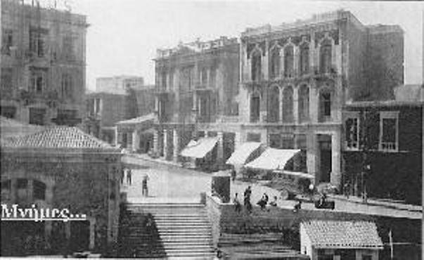 σημερινή πλατεία Καλλεργών, πλαισιωμένη από τα κυριότερα δημόσια κτήρια, κατά
